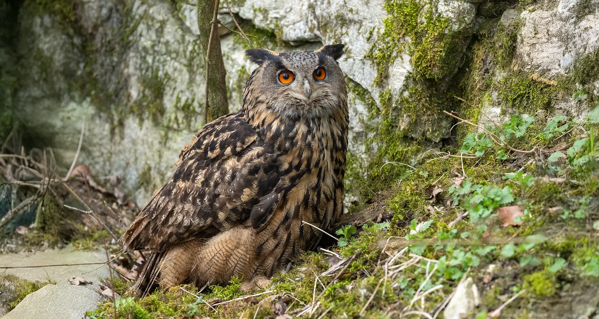 Dank seiner braun gesprenkelten Federn ist der Uhu perfekt getarnt und bleibt oft unbemerkt, bis er blitzschnell zuschlägt. Ob in Felsnischen oder Baumhöhlen – er weiss seine Umgebung meisterhaft zu nutzen.
